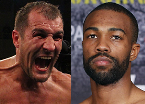 コバレフ(左)とラッセルJr■WBCが最新4月ランキングを発表。月間MVPには元世界王者ジャン・パスカル(ハイチ=カナダ)を下したL・ヘビー級王者セルゲイ・コバレフ(ロシア)が選ばれた。フェザー級でジョニー・ゴンサレス(メキシコ)を下し新王者となったゲイリー・ラッセルJr(米)が次点。日本勢はWBO世界戦の決まったミニマム級の田中恒成(畑中)、ライト級の粟生隆寛(帝拳)のほか、S・バンタム級の和氣慎吾(古口)の名前が消えた。ウェルター級の亀海喜寛(帝拳)は圏外へ。
