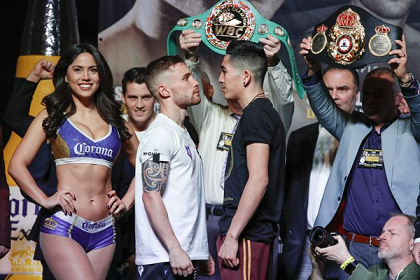 セミ格で行われWBA世界ライト級“レギュラー”王座タイトルマッチは王者デヤン・ズラティカニン(モンテネグロ)、挑戦者で3階級制覇を目指すマイキー・ガルシア(米)とも134ポンド1/2(61.01キロ)をマークし、リミット135ポンドに合格。