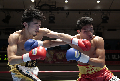 日本フェザー級12位のサウスポー阿部がOPBF同級4位のジョーに競り勝った。同じサウスポーの相手に対し左クロスのタイミングを早々とつかんだが、ジョーも右ブローをさし返 して阿部とわたり合う。阿部は7回にプレスを強め、最後まで動きは落ちなかったものの、ジョーも粘り強く対抗した。「内容はよくなかったけど何とか生き残った」と阿部。試合後は「OPBF王者の竹中良選手、ぜひ僕と戦ってください」と、同門の荒谷龍人を退けた仇敵にアピールした。阿部は14勝7KO2敗。三迫ジムのプロモートを受けるジョー(本名ジョー・ノイネイ)は12勝4KO2敗1分。