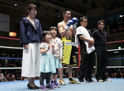 試合後はセレモニーが行われ、上野は家族とリング上に並んだ。日本王座に3度、OPBFに1度挑んで及ばなかった35歳は「ベルトを巻けなかったことはいまでも悔しいが、こんなに熱く打ち込めたことには感謝している。16年間ありがとうございました」とあいさつ。会場から大きな拍手を浴びた。上野の生涯戦績は19勝6KO14敗5分。