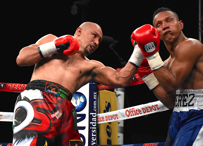 昨年6月初旬のフランシスコ・バルガス(メキシコ)戦の激闘(結果はドロー)以来の試合となったサリド。スタートからボディー連打を中心にペレスを攻め立てる。早くもストップ勝ちの予感が漂った3回、コロンビア人の右アッパーが命中。サリドが倒れる。