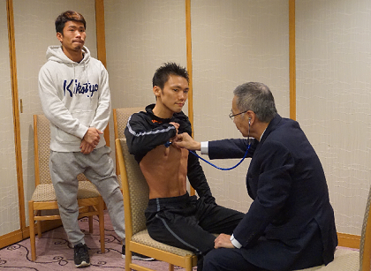 WBO世界フライ級チャンピオンの木村翔(青木)と挑戦者1位の五十嵐俊幸(帝拳)、IBF世界ミニマム級王者の京口紘人(ワタナベ)と挑戦者3位カルロス・ブイトラゴ(ニカラグア)も予備検診で元気な姿を見せた。