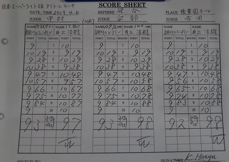 細川は9、10回と攻め、井上も力強いパンチを打ち込み、ようやく試合が盛り上がって終了のゴングとなった。スコアは97-93、98-93、98-92。