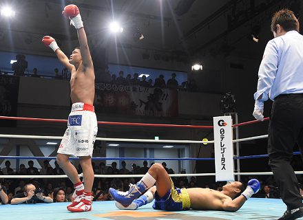 リング上で涙の太尊は「またリングに立ててよかった。一からやり直すつもりで(大阪から東京に)来た。もう一度チャンピオンになります」。戦績は14勝12KO3敗2分。昨年6月、現日本王者の竹迫司登(ワールドS)戦に続いて日本で連敗のムアンポンは4勝2KO4敗。