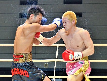 矢田は3回、右強打で形勢逆転。しかしその直後永野が左カウンターでダウンを奪う。続く4回、決めに出た永野だが、今度はそこに矢田のパンチがカウンターとなり効かされると、右でキャンバスへ。ダウン応酬の試合に2100人観衆が熱狂する。
