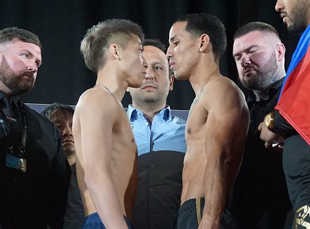 同じリングで行われるWBSS・S・ライト級準決勝、IBF同級王者イバン・バランチェク(ベラルーシ)と挑戦者ジョシュ・テイラー(英)も計量に合格。こちらはフェイスオフでテイラーが仕掛け、関係者がすかさず間に入るシーンがあった。