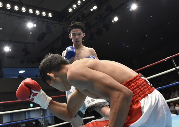 赤井は昨年9月、プロデビュー戦に挑み1回TKO負け。雪辱を期す赤井は初回、いきなり一基の左フックをもらってピンチを迎えた。ここからは互いに手を出し、どちらが倒れるか分からないスリリングな展開。しかし、赤井が徐々に一基の左フックに慣れ、右をヒットするようになる。