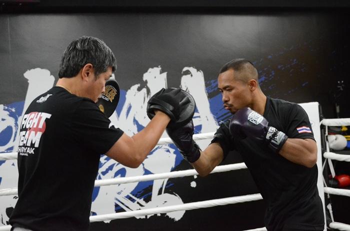チャチャイ・トレーナーとミット打ちを行うチャンピオン