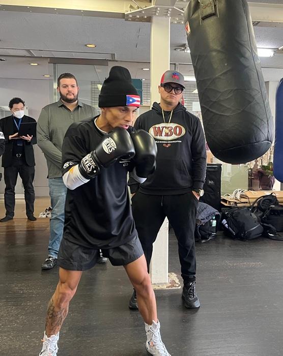 Following the press conference, he demonstrated rope skipping, shadowboxing, heavy bag work, and speed bag drills. While it was only light movement as per usual, Taniguchi’s trainer, Tadahiro Oguchi, observed his physical conditioning—noting the development in his lower body—and remarked, “He has built himself up well.” Trainer Oguchi added, “(Seeing Santiago) has flipped my switch again.” Santiago, who reportedly conducted extensive sparring with minimumweight champion Oscar Collazo in Puerto Rico, declared he is in peak condition, stating he is “100 percent ready” and seemingly eager for fight day.