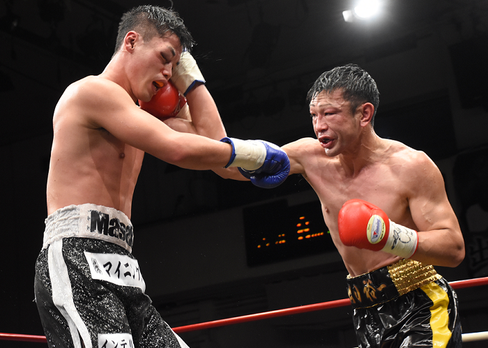 The referee stopped the scheduled 10-rounder at Korakuen Hall 1 minute and 47 seconds into the round because of Kobayashi’s severely swollen eyelid he suffered in the fifth round due to an accidental head butt. The decision then went to the judges’ scorecards.