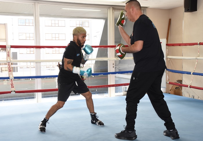 The 28-year-old Santiago showed shadowboxing, mitt- and punching-bag hitting by showing nimble movement. Particularly, he showed rapid combination blows in the mitt-hitting practice.