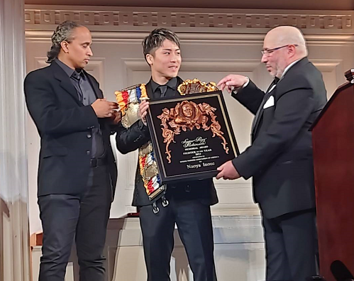 The 31-year-old Inoue is the first Japanese to receive the award, dubbed the Sugar Ray Robinson Award, and was given the memorial plaque and a belt in the ceremony.