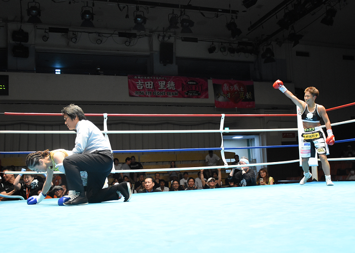 With the victory, the 36-year-old Minowa improved her record to nine wins, including four KOs, against four losses. For her part, the 41-year-old Okuda impaired to an 8-6-2 win-loss-draw tally with two KOs.