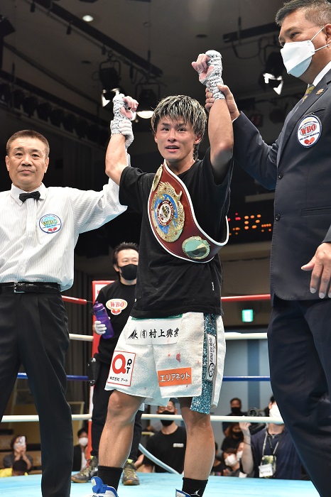 Top-ranked World Boxing Organization’s Asia-Pacific super featherweight Yoshimitsu Kimura of Shisei Boxing Gym battered into submission fourth-ranked Kanehiro Nakagawa of Kadoebi Boxing Gym in the 12th and final round and won the vacant WBO crown in an exciting fight on Aug. 30 at Tokyo’s Korakuen Hall.
