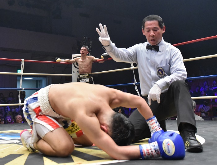 しかし最終回、木谷は「試合前から当たると感じていた、自然に出た」右でダウンを奪い、再開後の連打で大谷がロープを背負うと、レフェリーが割って入った。終了ゴングまであと18秒だった。