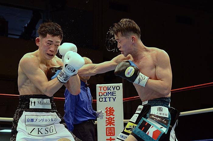 序盤は右を封印していた嶋田だが、そのうちに岡本の左が邪魔で出せなくなり、意を決して打てばリターンのワンツーを岡本に打たれる。7回には嶋田の前進に岡本が強烈な右カウンターを合わせて会場を沸かせた。