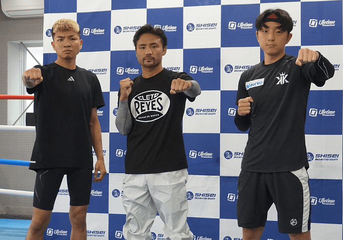 24日に東京・大田区総合体育館で開催される「Life Time Boxing Fights 15」に出場する元世界王者の比嘉大吾、元WBOアジアパシフィック・フェザー級王者の森武蔵、日本S・フライ級9位の重里侃太朗の志成ジム3選手が21日、都内のジムで記者会見に出席し、意気込みを語った。