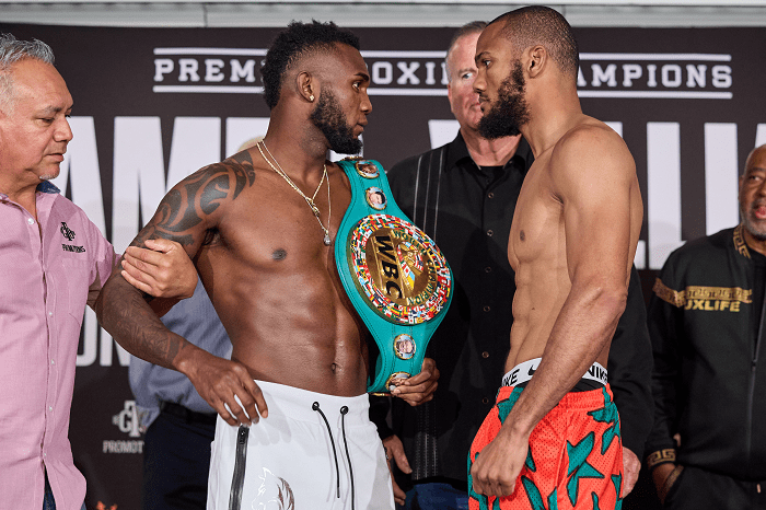 メインのWBCミドル級暫定王座タイトルマッチは、暫定王者カルロス・アダメス(ドミニカ共和国)が159.6ポンド(72.39キロ)、挑戦者ジュリアン・ウィリアムス(米)が159.2ポンド(72.21キロ)をマークしてリミットの160ポンドをクリア。WBCミドル級王者ジャモール・チャーロ(米)は2年以上リングから離れており、アダメスは勝って正規王者昇格へのチャンスをつかみたいところだ。