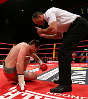 試合は2ラウンド途中までプライスがリードする展開。しかしトンプソンの右が急襲、リング中央に倒れたプライスは起き上がったものの、足元が定まらず主審がストップした。タイムは2分17秒。