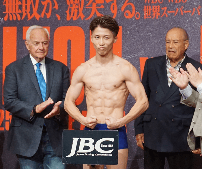 計量にはWBOのフランシスコ・バルカルセル会長、トップランクのボブ・アラムCEO、リングアナウンサーのジミー・レノンJrも姿を現わし、世界的な一戦だということを印象づけた。フルトン(29=21勝8KO)はWBO王座が3度目、WBC王座が2度目の防衛戦。井上(30=24勝21KO)はこの試合に4階級制覇をかける。海外のブックメーカー(ウィリアムヒル)は、井上の勝利に1.22倍、フルトンの勝利に4.33倍のオッズをつけており、井上有利を予想している。