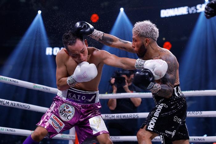 試合後のリングにはIBF&WBO王者ヨカスタ・バジェ(コスタリカ=28勝9KO2敗)がリングイン。エストラーダに対し、コスタリカでの4団体統一戦を呼びかけた。エストラーダは25勝9KO無敗。判定への不満を口にしたジュディカは19勝1KO2敗3分1無効試合。Photo by SUMIO YAMADA