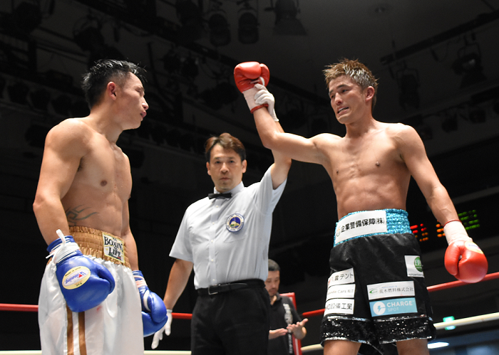 メインの京口はフィリピン・フライ級1位のジャーベン・ママとフライ級10回戦を行う。5月の復帰戦は試合途中で右拳を痛めて判定勝ち。「フライ級初戦ということで勝ちにこだわった」と言いながらも京口としては消化不良の内容で、記者会見では「今回のテーマはKO」と力強く宣言した。
