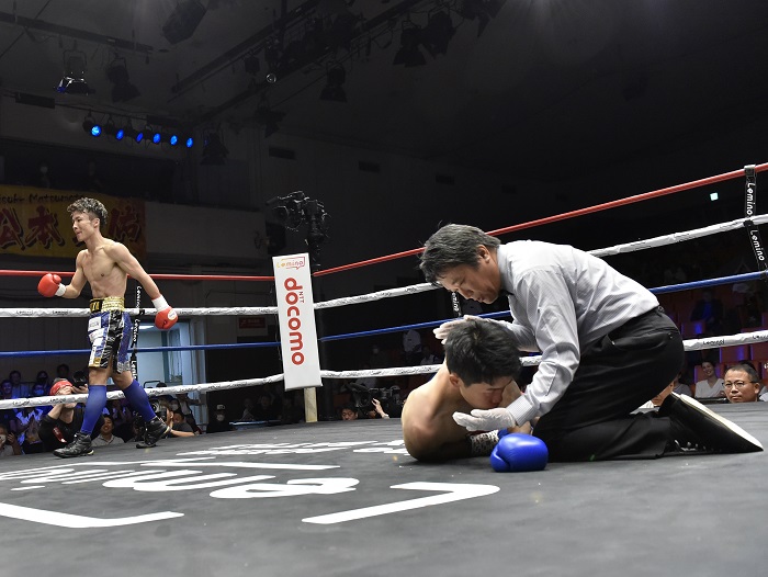 井上尚弥の幼なじみで元Jリーガーの山口がプロデビュー。同じくデビュー戦の加藤に1回2分43秒TKO勝ちした。山口はスタートから鋭いジャブを決め、終盤に右カウンターを一閃。加藤がグシャリと崩れ落ち、主審がノーカウントでストップした。