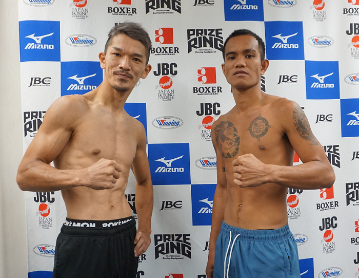 あす2日、後楽園ホールで開催される「WHO’S NEXT DYNAMIC GLOVE on U-NEXT」の計量が1日、日本ボクシングコミッションで行われた。メインのS・フェザー級10回戦に出場する元IBF同級世界王者の尾川堅一(帝拳)は58.8キロ、対戦相手のマービン・エスクエルド(フィリピン)は58.7キロで合格した。試合の模様はU-NEXTでライブ配信される。