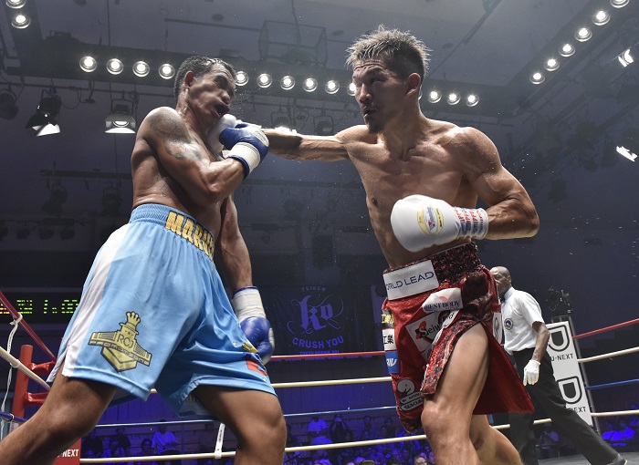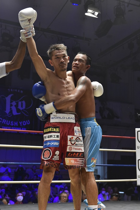 21年11月、悲願の世界王座に就きながら、翌年6月イギリスでの初防衛戦でジョー・コルディナ(英)に2回TKO負けを喫した強打の35歳、尾川が再起2戦目のリングに上がった。