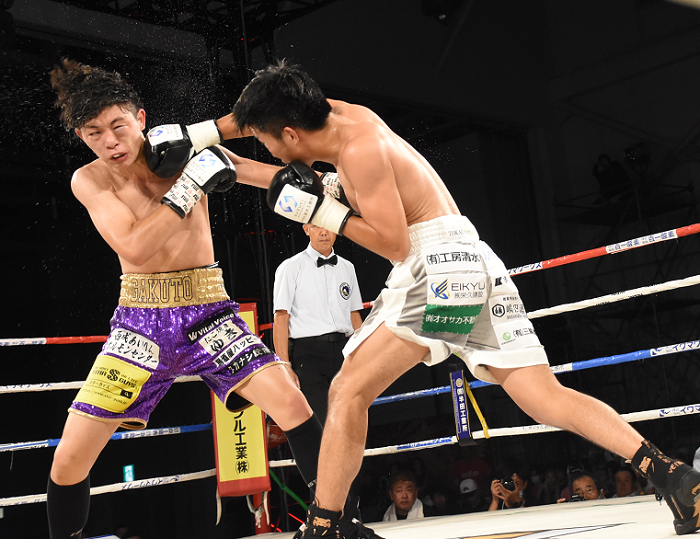 セミの6回戦では、アマチュア東洋大学の大学日本一に貢献した大畑俊平(駿河男児)がプロ・デビュー戦で山口楽人(陽光アダチ)に判定勝ち。地元静岡出身のホープは、立ち上がりから得意のジャブを繰り出し、ダウンシーンはなかったものの無難にまとめ、白星発進。山口はJBCに記録の載らないタイの3戦を含め8戦目にして初黒星となった。