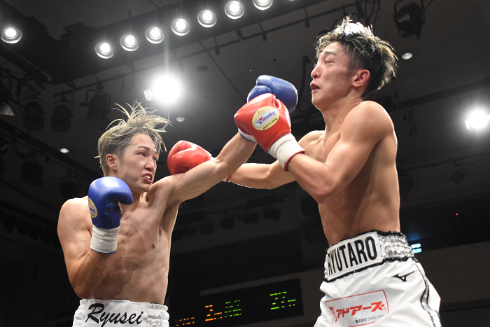 2022年全日本新人王の石井が元東洋太平洋王者でWBCミニマム級15位のダンテにチャレンジ。パワーのある石井はガードを固めてプレスをかけていくが、ベテランのダンテはポジショニングとブロッキングが巧み。ジャブと右ボディもうまく、テクニック石井を上回る。若さとパワーで上回る石井は前に出て左強打をブロックされても粘り強く打ち込んでいった。