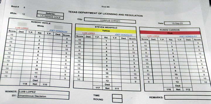 しかし公式スコアは118-110、117-111、116-112と明白な数字でロペスが勝利アナウンスを受けた。