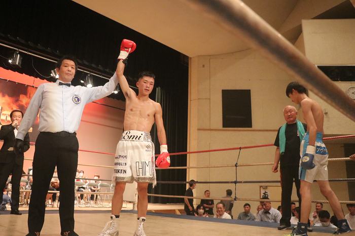 江見ジム主催の興行が24日午後、美作文化センター(岡山県美作市)であり、6回戦と4回戦計8試合が行われた。