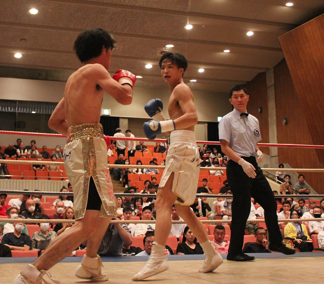 同じくライト級6回戦では戸川叡二(姫路木下)と山下玄輝(結花)の西日本新人王の実績を持つ同士が対戦。ともに前試合で敗れており再起戦だったが、スイッチヒッターの戸川が2回に左ストレートでダウンを奪い、2-1判定で接戦をものにした。山下も終盤にかけて着弾率が上がったものの、逆転には至らず。