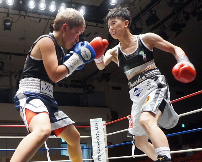 元女子日本アトム級王者の長井と日本同級6位の中野の対戦。中野が初回から断続的に右を決めた。長井は距離を詰めていくがもみ合いになり、効果的なパンチを打てない。中野は3回になるとボディ打ちも見せた。