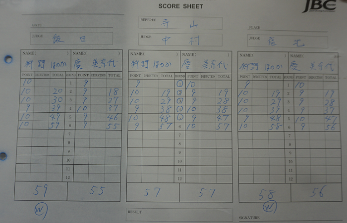 狩野ほのか(TEAM10COUNT)[2-0(59-55、58-56、57-57)]慶美奈代(SUN-RISE)