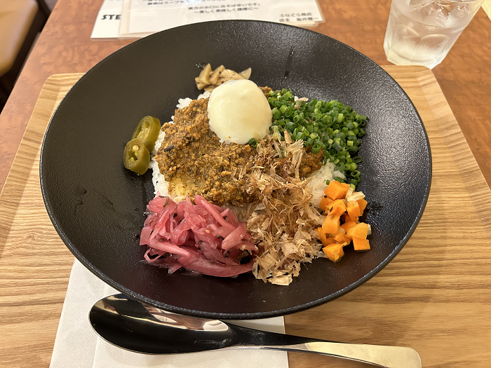 キーマカレー「ふなどらカレー」を基本に辛さやご飯の量を選べる。各種アチャールなどのトッピングも多数。半分ほど食べ進めたところで、昆布だしで取ったオニオンスープをかけ、スープカレー風にして締めるという店舗ならではの新たな食べ方もスタート。早速、「また味が変わって、美味しい!」と好評を得ていた。探求心旺盛で遊び心もある船井さんのことだから、今後も新たなメニューやアレンジを加えて楽しませてくれるだろう。