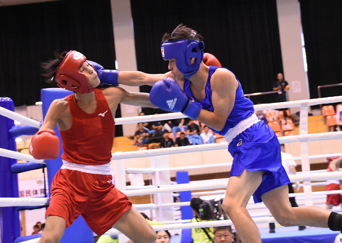 アマチュアのかごしま国体ボクシング競技の決勝戦が12日、阿久根市の阿久根総合運動公園総合体育館であり、少年・成年の部の17試合が行われた。この結果、大阪府(65.5点)が2位の宮崎県(61点)を振り切って総合優勝を果たした。1階級(フライ級)のみ実施の女子は篠原光が勝った東京都が優勝を飾っている。
