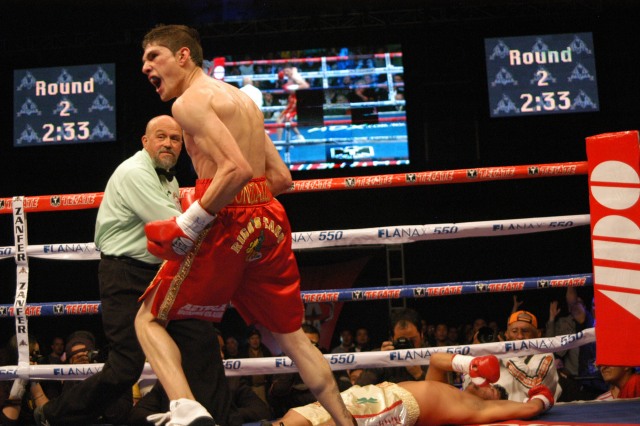 無敗同士、年齢もゴンサレスが19歳、マルティネスが20歳の新鋭。2回、ゴンサレスの左フックでマルティネスがグラつく。ゴンサレスが一気に畳み掛けると、マルティネスは悶絶。辛うじて起き上がったが、戦える状態でなく主審はカウントアウトした。