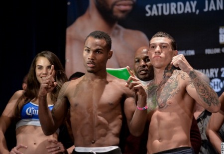 同じリングではS・ウェルター級センセーション、ジャーメル・チャーロ(米)が昨年2度世界に挑戦したガブリエル・ロサダ(米)と10回戦。チャーロ(23=22勝11KO無敗)は153ポンド(69.4キロ)、ロサダは154ポンド(68.85キロ)だった。Photos/BoxingScene.com