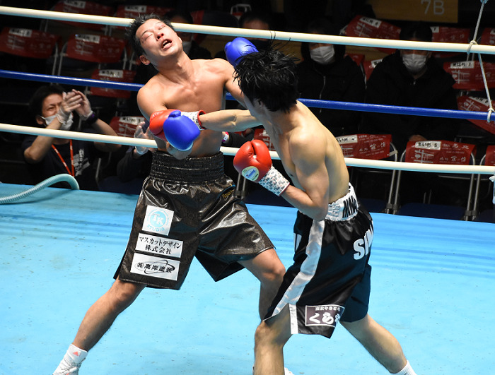 対する諏訪も2回、「普段は待ちのボクシングだが、今日は攻めていく作戦だった」というとおり、積極果敢に前に出て右をヒットし挽回を図りにいく。が、平野は左ボディストレートや緩急自在で多彩な左を打ち込んで諏訪を中に入らせず、形勢を引き戻してペースを掌握し始める。