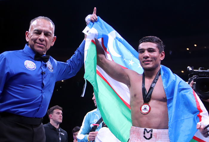 WBA・S・バンタム級挑戦者決定戦が16日(日本時間17日)、米グレンデールのデザートダイヤモンド・アリーナで行われ、元WBA&IBF王者ムロジョン・アフマダリエフ(ウズベキスタン=写真)が同級2位ケビン・ゴンサレス(メキシコ)に8回2分48秒TKO勝ち。26日に東京・有明アリーナで行われる井上尚弥(大橋)とマーロン・タパレス(フィリピン)の4団体統一戦の勝者への挑戦に名乗りを上げた。