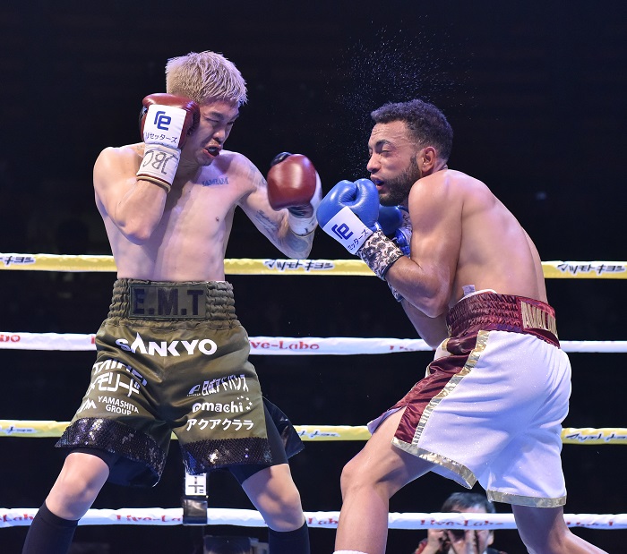 井岡がジワジワと前に出て、ペレスが引いて強打を狙う展開は5回、井岡が右カウンターを効かせると、ボディ打ちで畳みかけてペレスがダウン。立ち上がったペレスに強烈な右を浴びせ、ペレスがキャンバスに倒れた、立ち上がって続行となったところでゴングが鳴った。