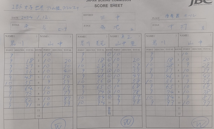 試合は若い山中のパワフルな攻撃が目立ったが、岩川も鼻血を流しながら脱力した動きで対抗し、左右のパンチを繰り出し続ける熱闘。最終10回は互いに引かず、激しくパンチを交換して試合終了のゴングが鳴った。