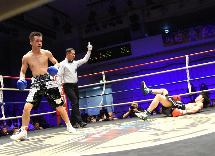 圧力をかける川浦がカウンターの左を炸裂させるが、今度は前のめりになった川浦にの廣本の左フックをが決まる。試合が一気にヒートアップする中、いったん試合を落ち着かせた川浦は、廣本の打ち終わりに左を決めてダウンを奪った。