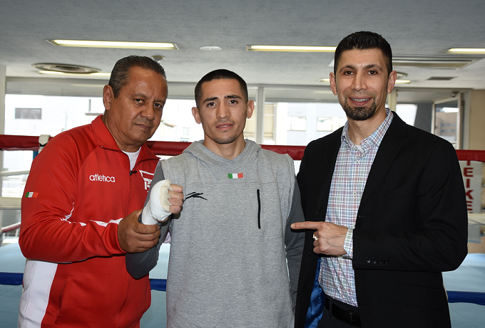 チームはリラックスした様子で、この日61歳の誕生日を迎えたベガ氏が、帝拳ジムのカルロス・リナレス・トレーナー(35歳)と同じ誕生日だと知ると、2人で握手を交わして大盛り上がりだった。