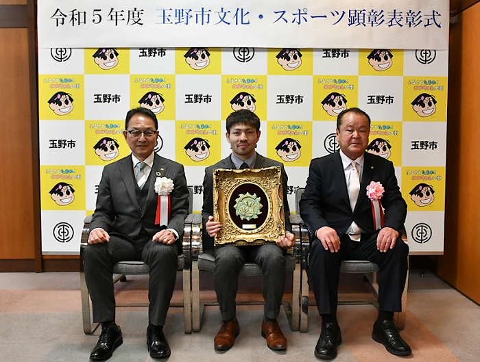 岡山県内のジムで初の世界チャンピオンとなったユーリ阿久井政悟(WBA世界フライ級王者=倉敷守安ジム)に25日、今度は現住居地の同県玉野市から「玉野市文化・スポーツ特別顕彰」が贈られた。岡山県、出身地でジムのある同倉敷市に次いでの表彰で、玉野市では今後、阿久井に市のアンバサダー的は役割も期待している。