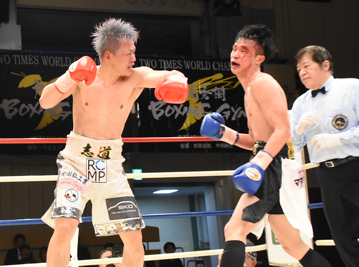 元日本ランカーの青山が脚を使うサウスポーの東を追いかけた。青山は2回、ジャブを効果的に当て、3回は右を上下にヒットした。4回も青山の右が決まるが、東の左で青山が右目上から出血した。