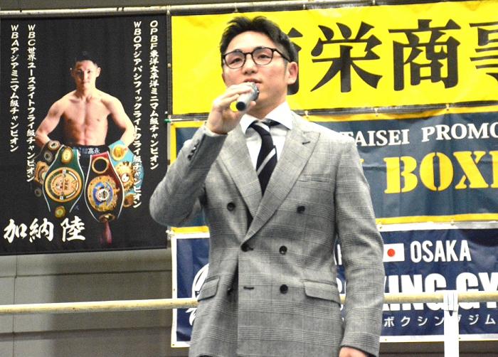 この興行で当初、加納陸(26=大成)がメインを任されていたが、2度目の世界挑戦が決まりそうになり、試合はなくなり、加納がリング上で「8年前の初挑戦の時より、体も心も強くなっているので応援してください」とあいさつした。