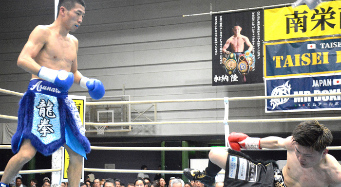 セミのL・フライ級8回戦は、22年全日本L・フライ級新人王で、JM・加古川ジムから移籍した日本同級8位、松江琉翔(19=大成)が大橋波月(なつ、25=湘南龍拳)のパワーあふれる攻めに屈してKO負けした。松江は6勝1KO1敗、ランキング入りが濃厚になった大橋は8勝6KO3敗1分。